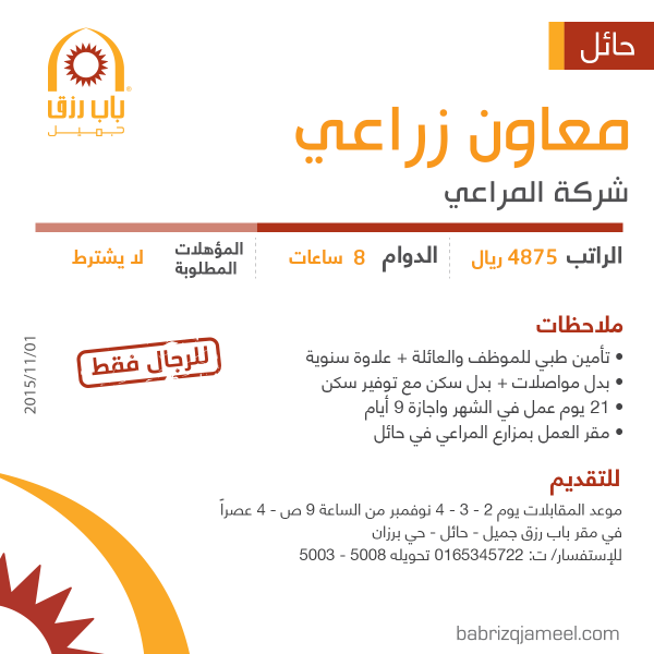 وظائف شركة المراعي تبوك. جنب ا إلى جنب مع مبادرات التدريب والتطوير. 10th 11th of december 2019 arabnet riyadh 27th 29th of january 2020 tawdheef 2020 11th 12th of february 2020 step conference 2020. أعلنت شركة المراعي من خلال حسابها الرسمي بموقع لينكد إن لخدمات التوظيف عن طرح وظيفة إدارية شاغرة بمجال الخدمات اللوجستية للعمل بالشركة بمدينة الرياض بمسمى أخصائي الخدمات اللوجستية وذلك حسب التفاصيل الموضحة. أعلنت شركة المراعي من خلال حسابها الرسمي بموقع لينكد إن لخدمات التوظيف عن طرح وظيفة إدارية شاغرة بمجال الخدمات اللوجستية للعمل بالشركة بمدينة الرياض بمسمى.
